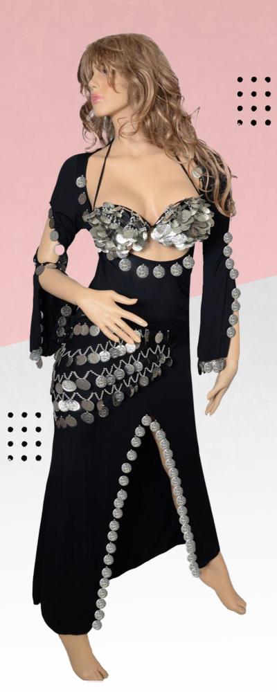 - عبارة عن مجموعة مكونة من3 قطع قميص طويل باكمام متصلة وانيقة وقدرية اسفنجية مغطاة بالقروش الفضية برباط خلفي واعلى الرقبة للتحكم بالمقاس وكلسون .