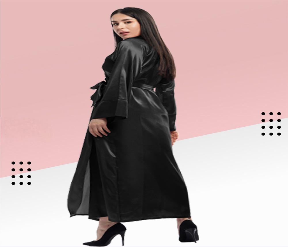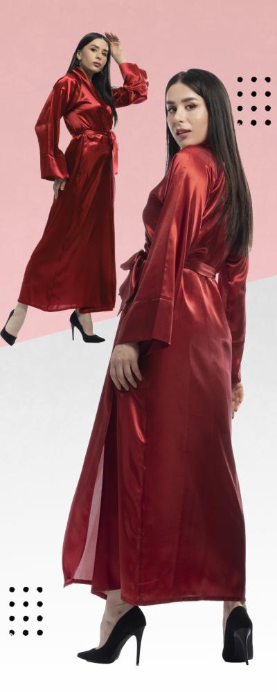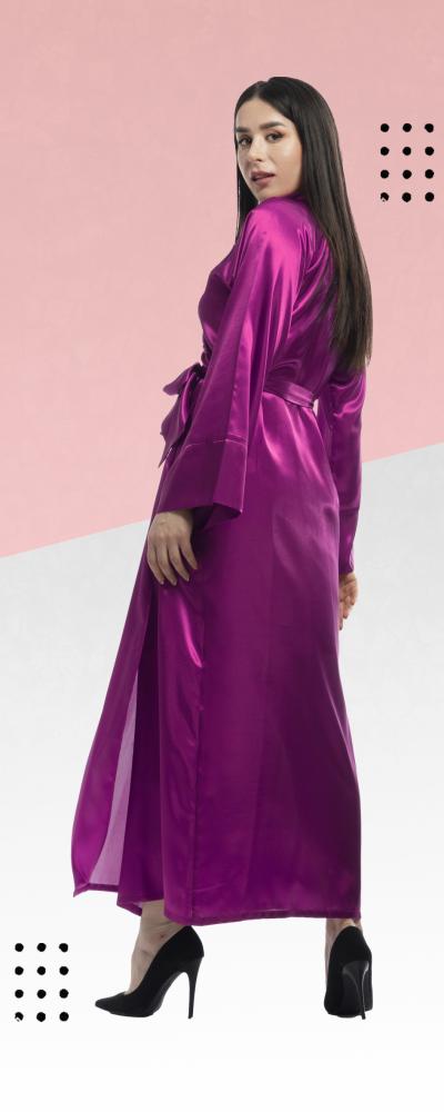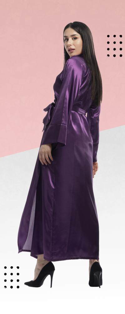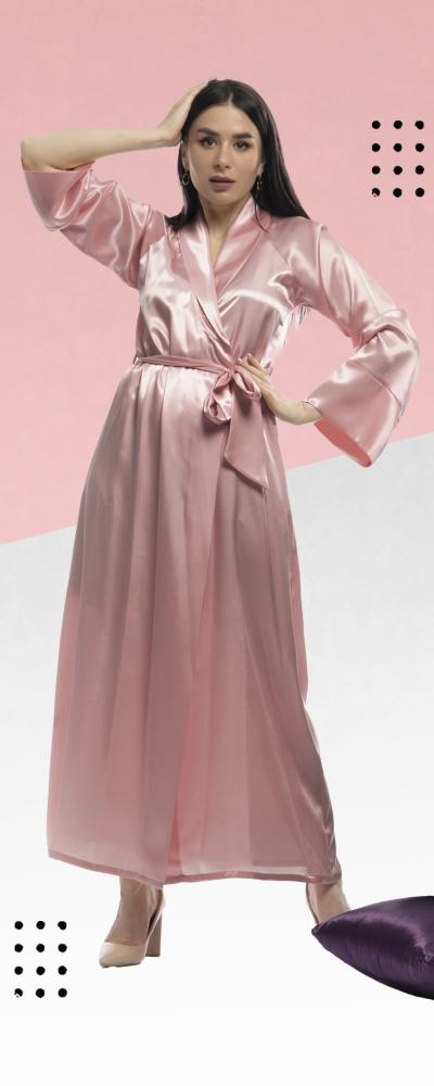 روب استقبال ساتان طويل بياقة انيقة ورباط جانبي و رباط خارجي .