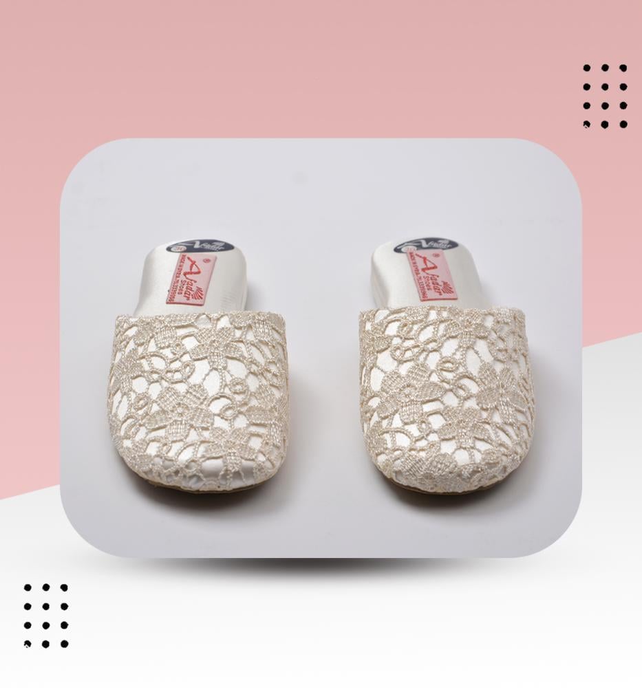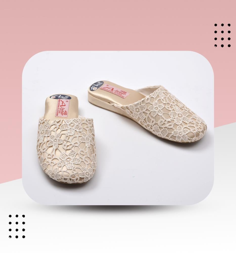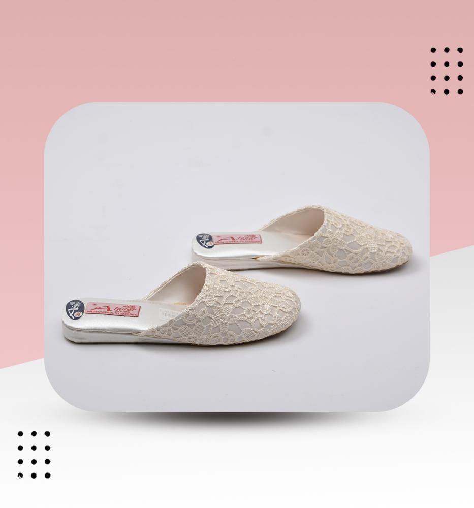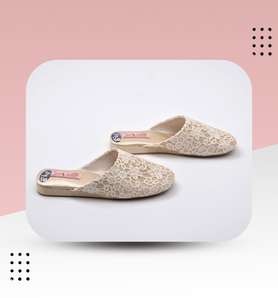 - شبشب مريح كعب واطي مغطى بدانتيل .