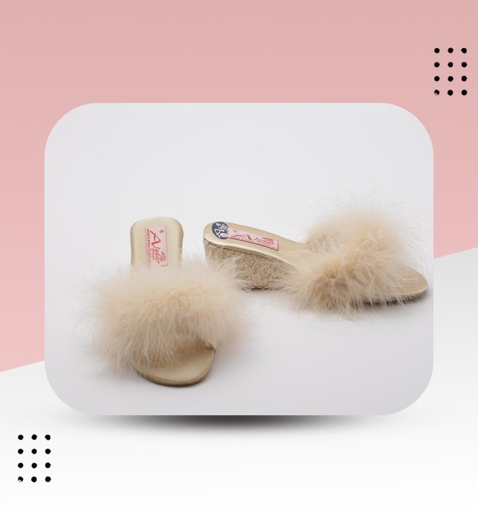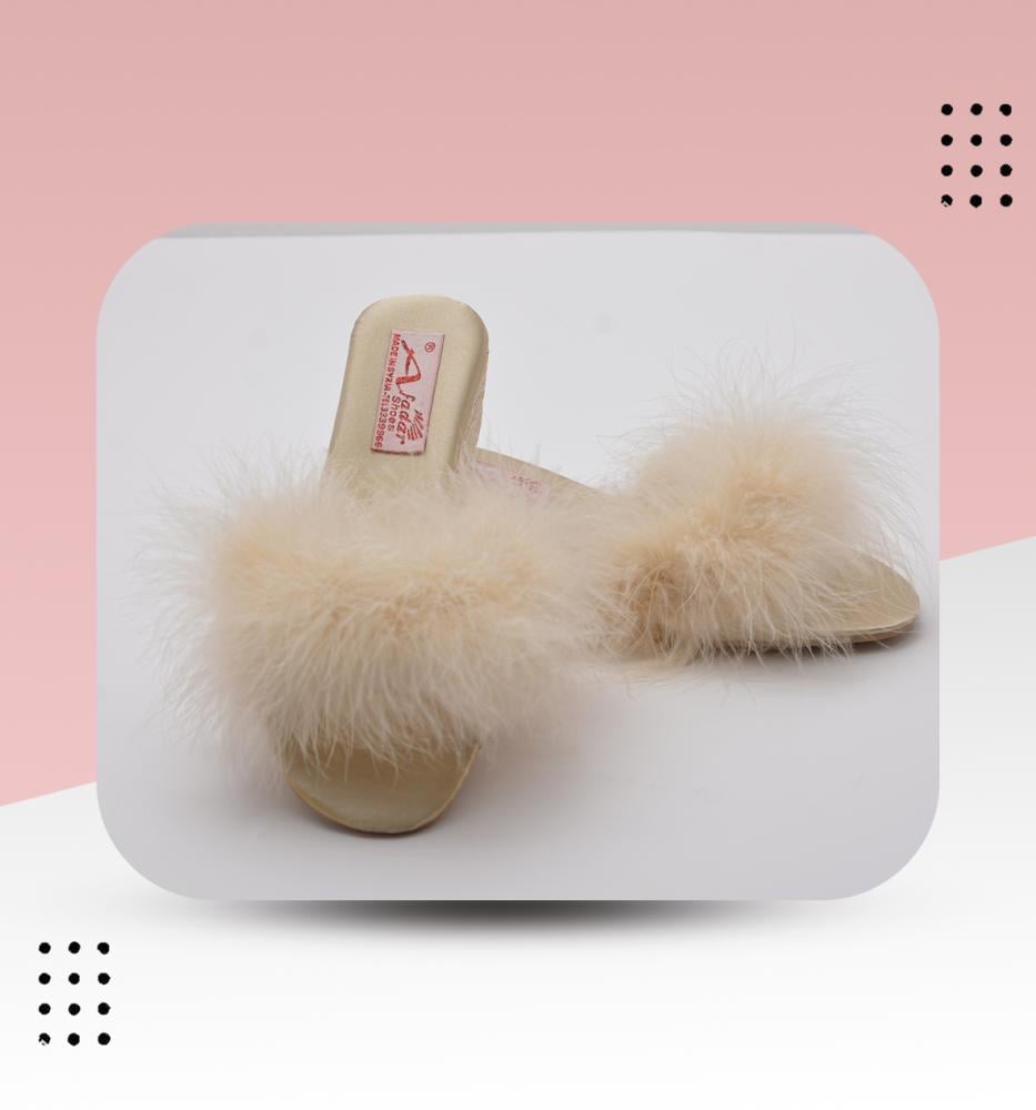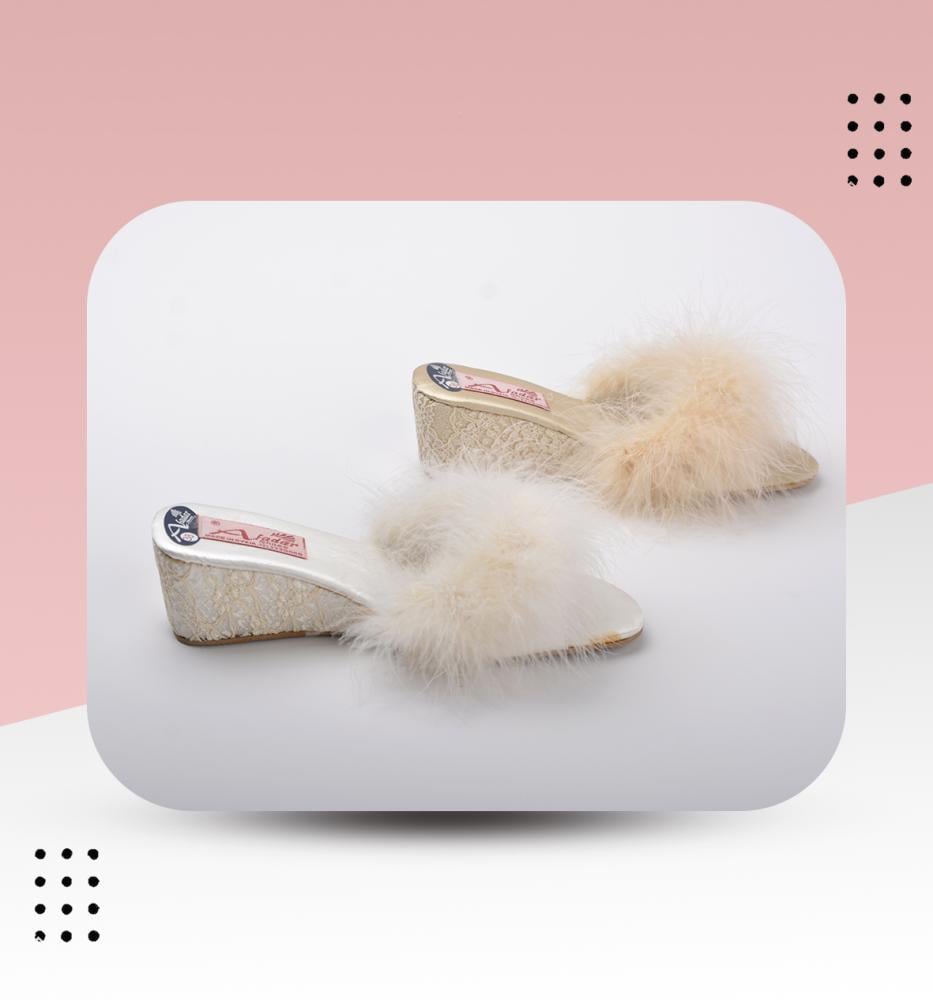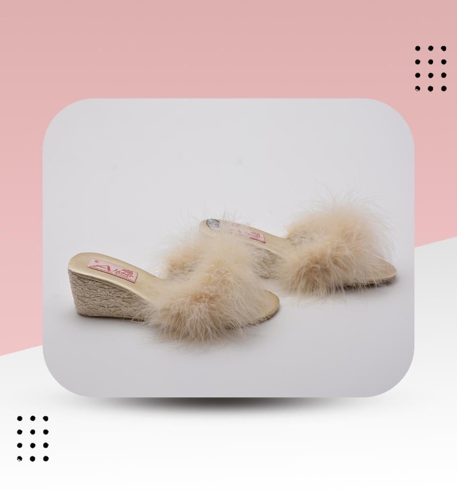 - شبشب مريح كعب وسط مغطى بريش ناعم وكثيف .