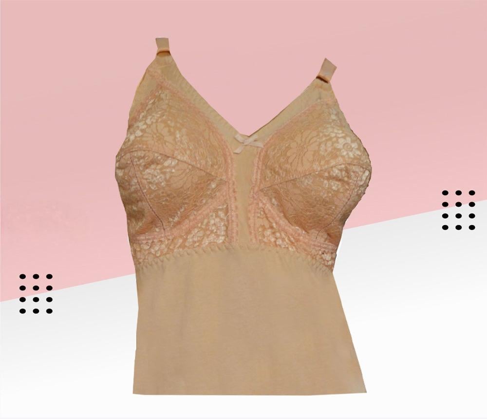 • شلحة قطن طويل مع حمالة صدر مغطى بالدانتيل .