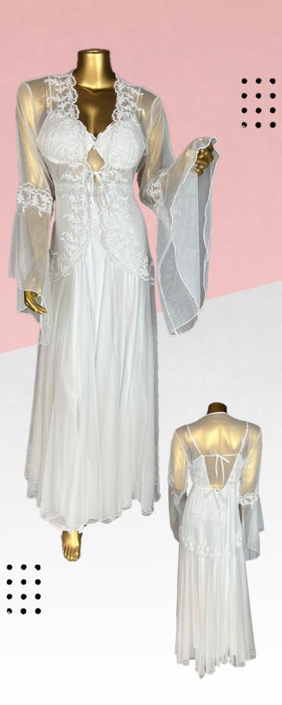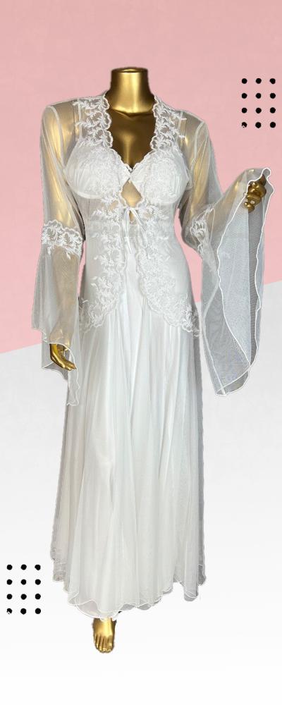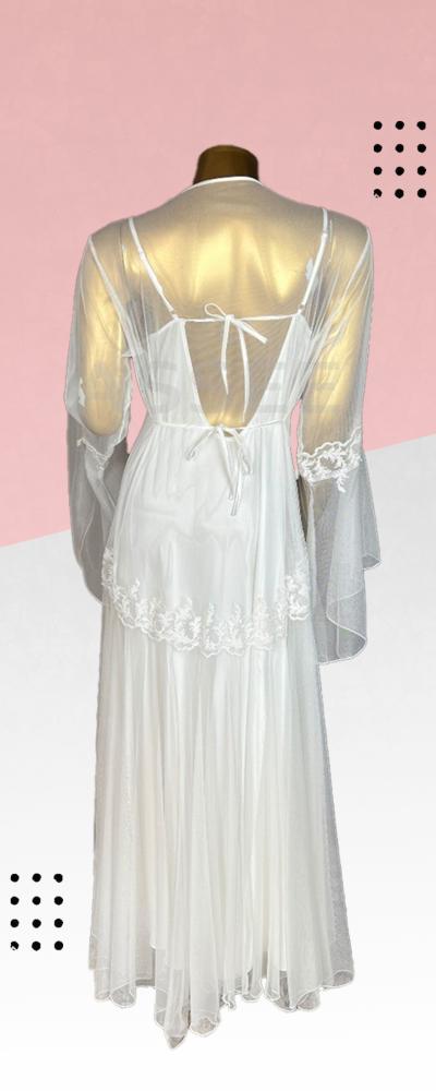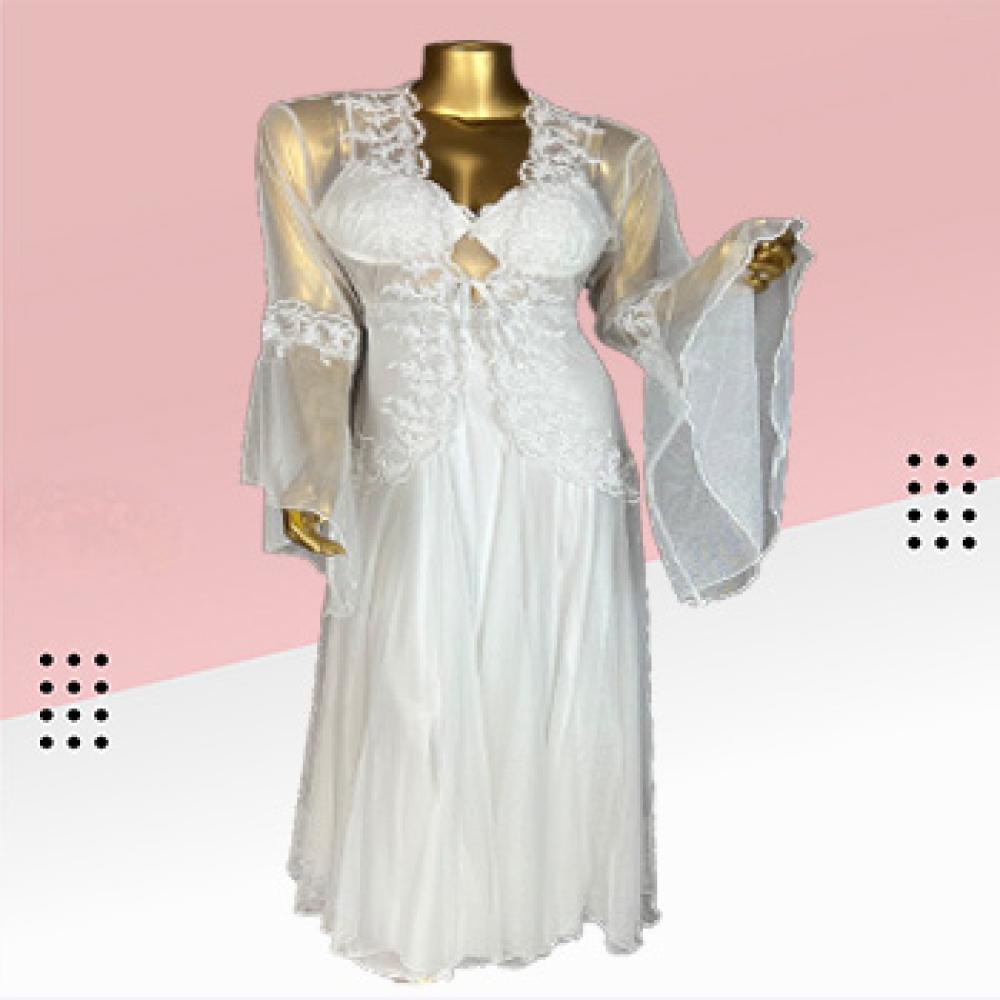 - مكون من قطعتين قميص داخلي حرير بصدرية بارز مطرز بدانتيل ناعم جدا اسفل الصدرية تول شفاف يعطيك مظهرا جذابا وفتحة ظهر على شكل حرف U بخيوط حريرية للتحكم بالمقاس و روب خارجي تول بدانتيل ناعم انيق وطبقة بدانتيل مميزة وجميلة و اكمام راقية بنهاية واسعة وخيوط حريرية ف الخلف للتحكم بالمقاس .